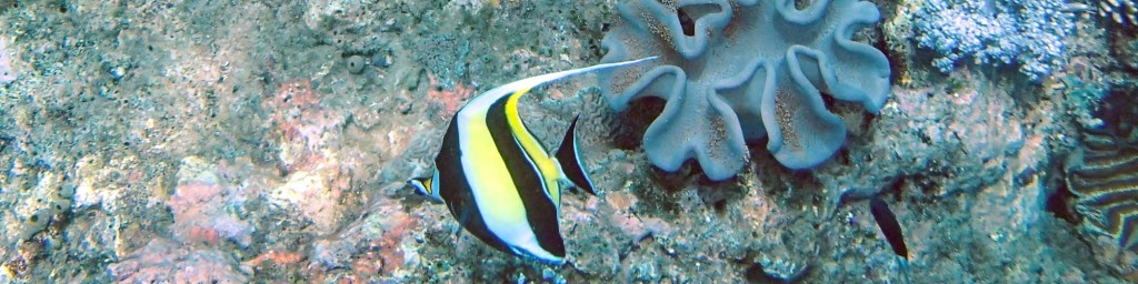 Entry point: Best to get in at a particular spot where the sandy ocean floor comes all the way to the beach – look for the local fishing boats pulled up on shore near the small fishing village, and the lighter blue-green color that means sand under the water, not rocks; getting in elsewhere means you are probably entering right on top of the reef, which should particularly be avoided at low tide